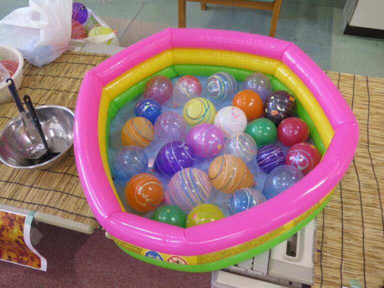 当施設のヨーヨーは“釣る”のではなく料理用の[おたま]を使って“すくう”タイプとなっております。