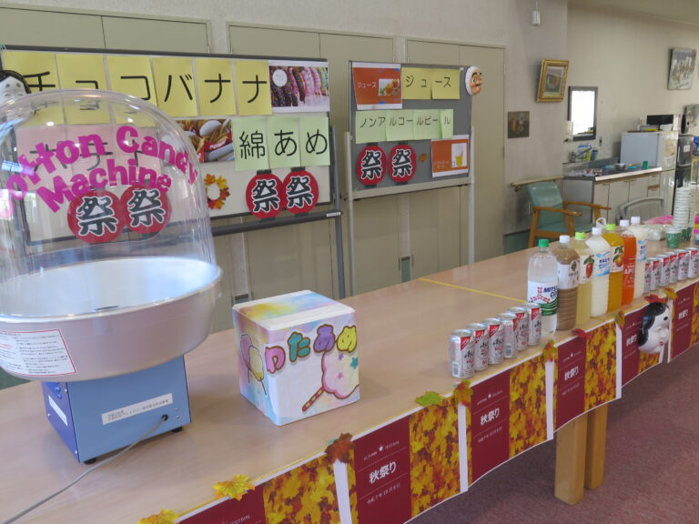 綿あめ、ドリンクの食べ物の出店を用意しました。
