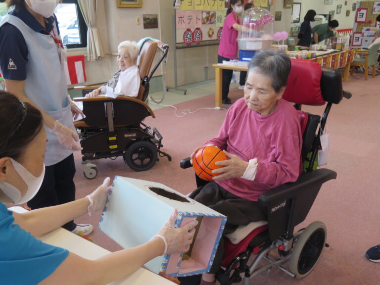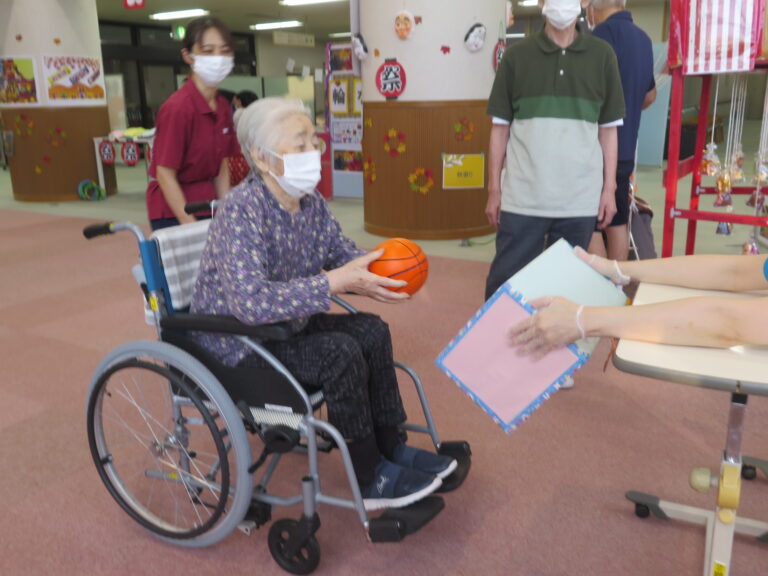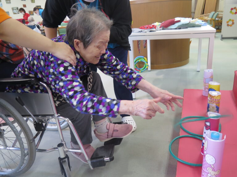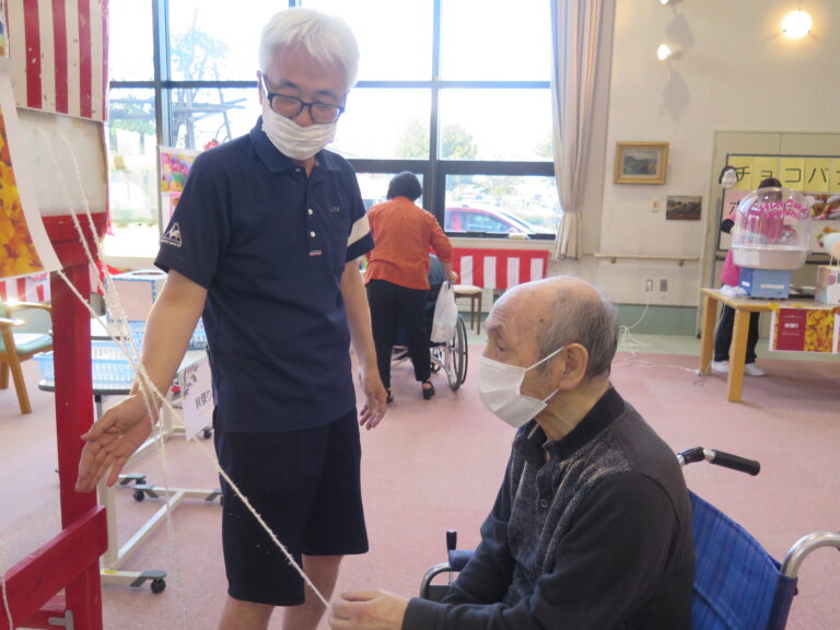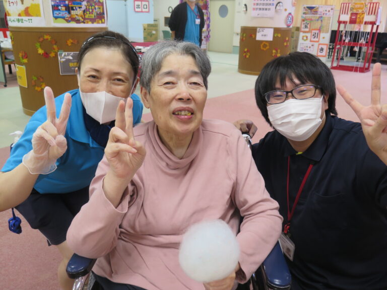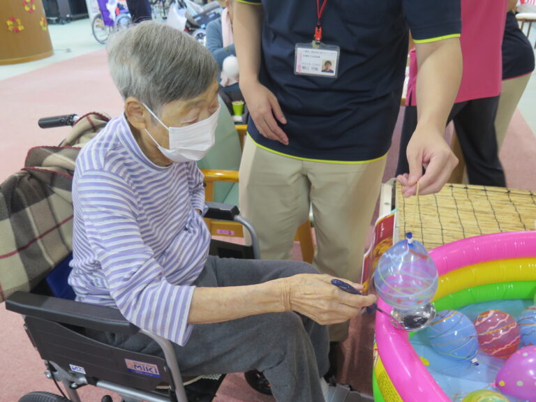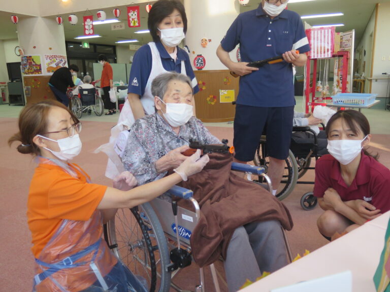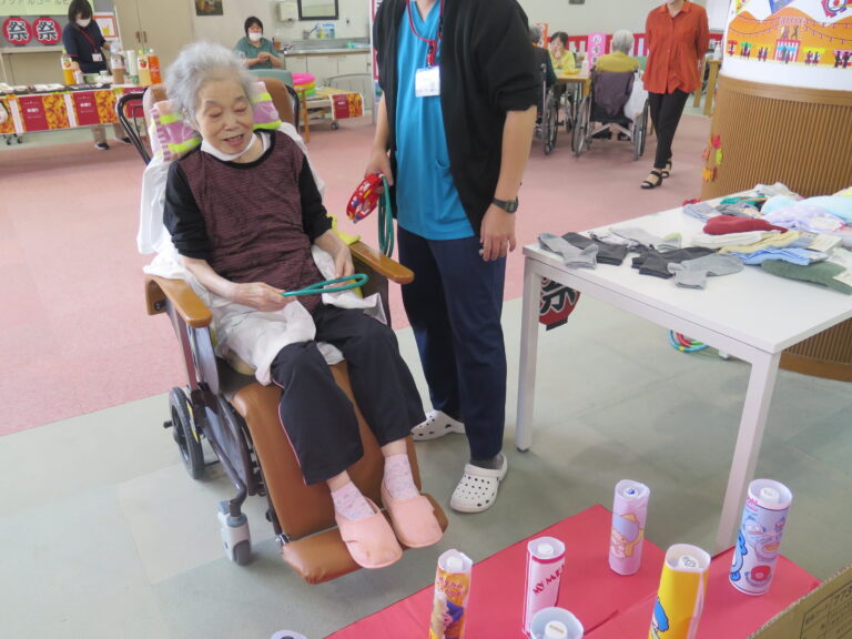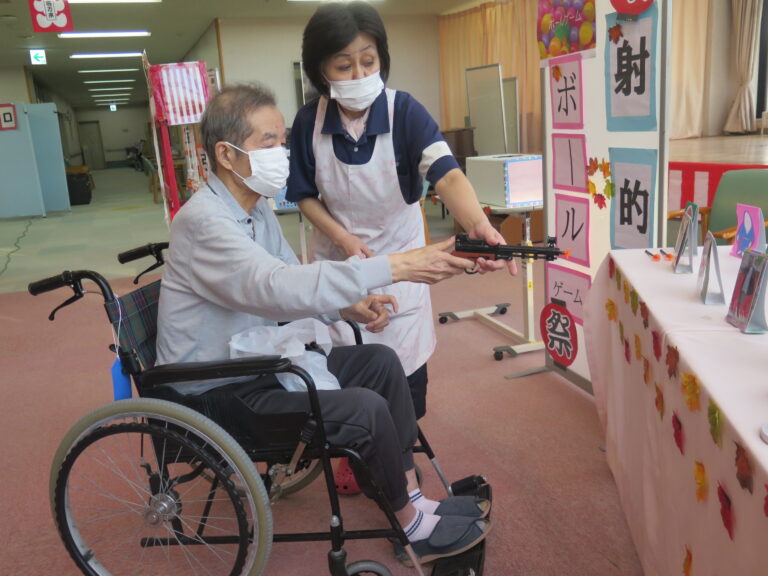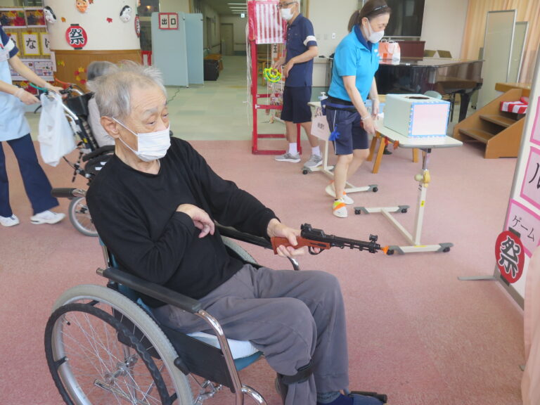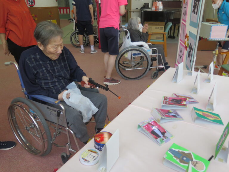 射的をしている男性入居者様は子供の頃に戻ったような目の輝きで次々に的を倒していました。