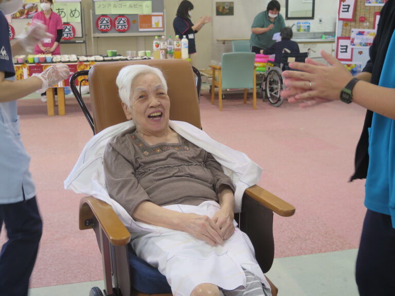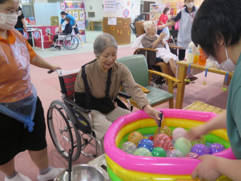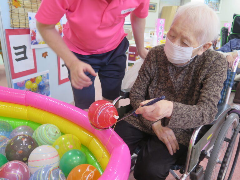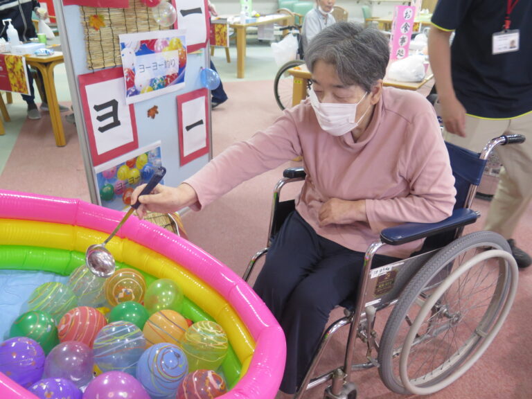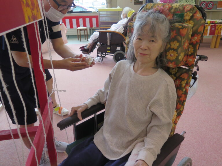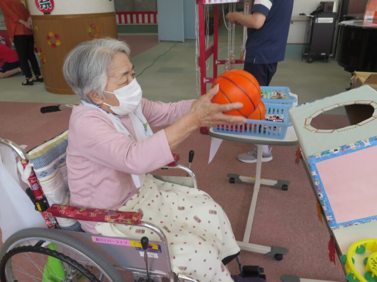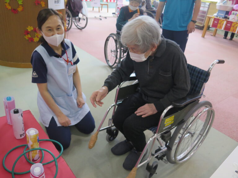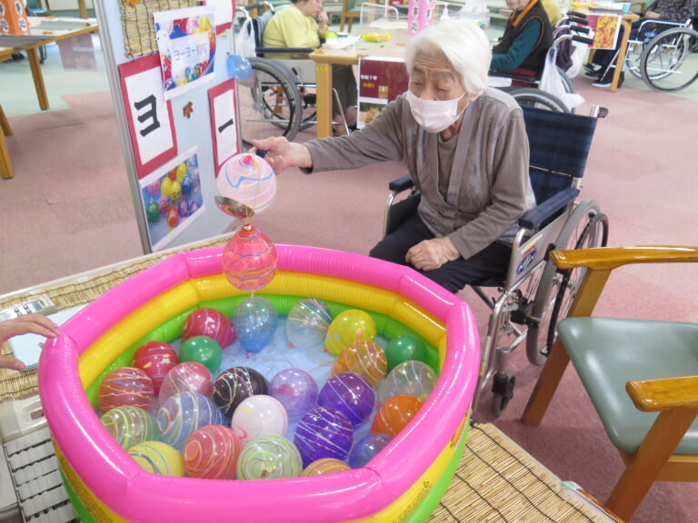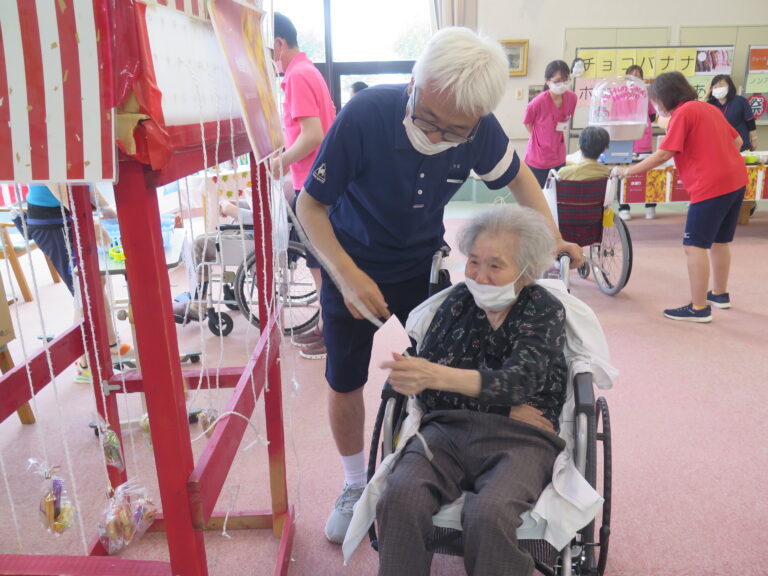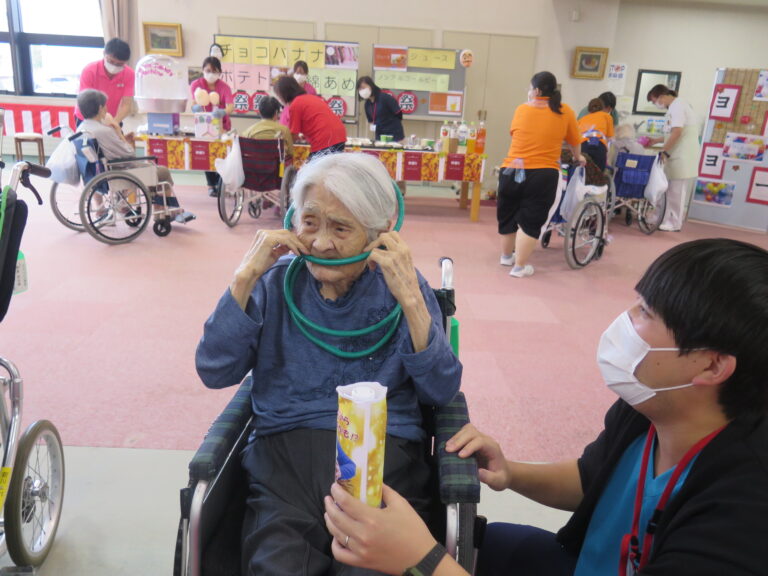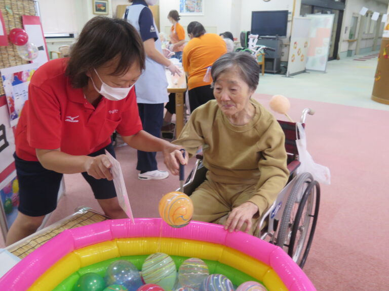 射的をしている男性入居者様は子供の頃に戻ったような目の輝きで次々に的を倒していました。
