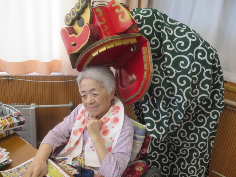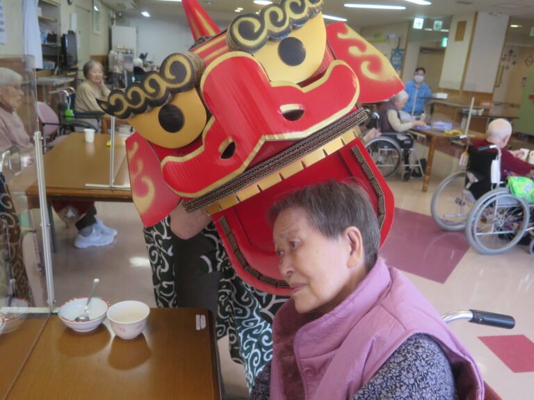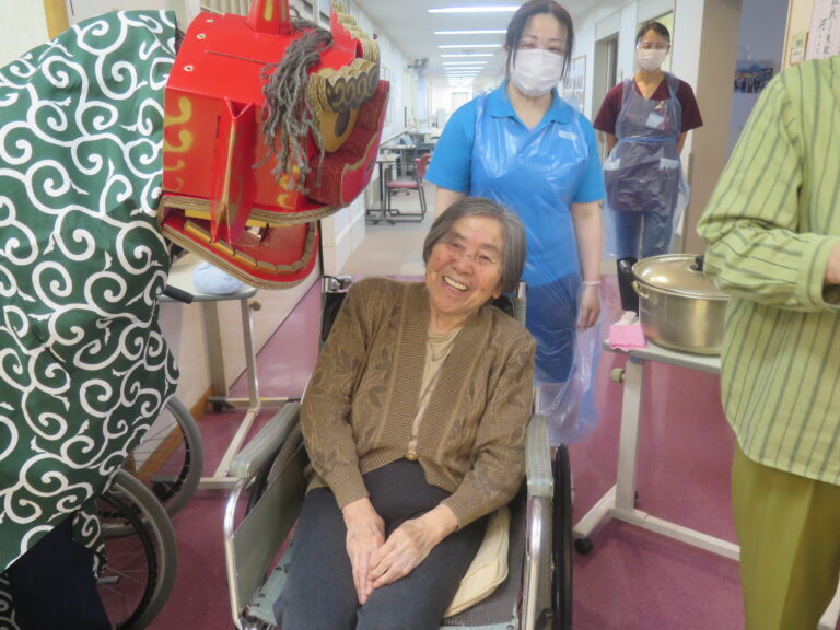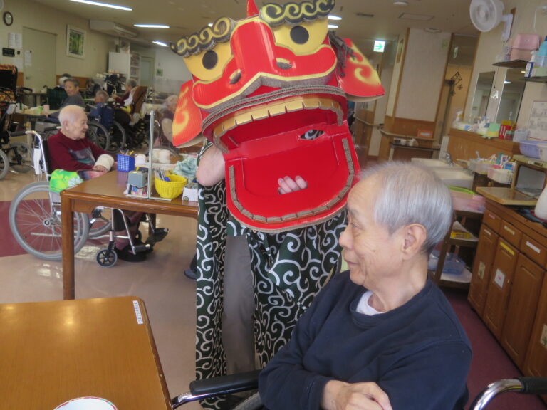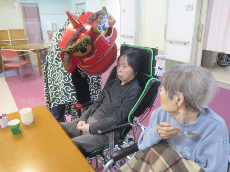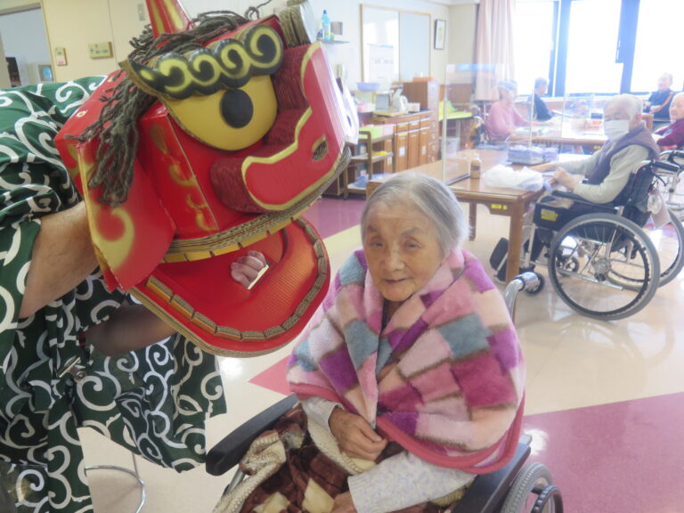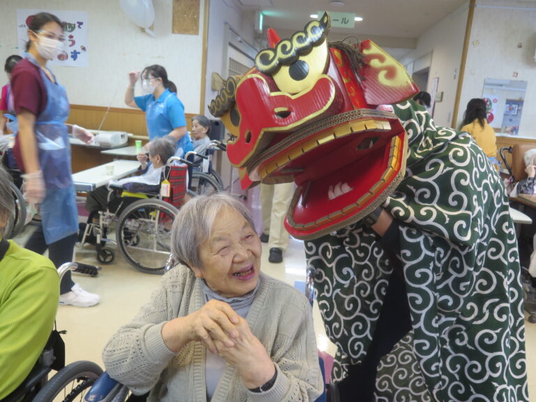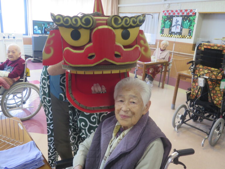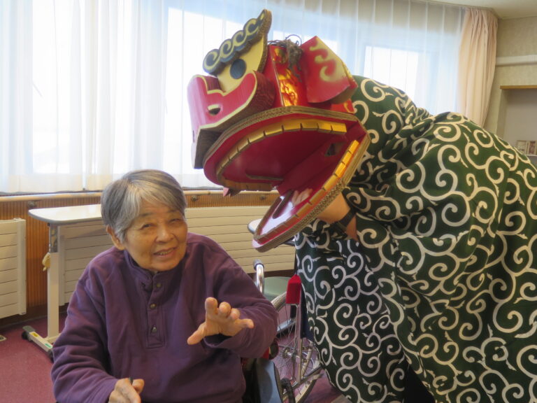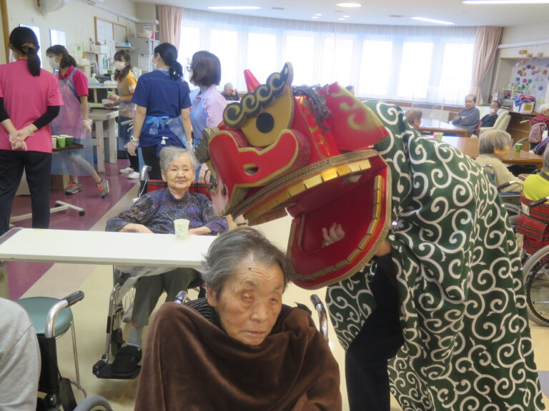 続きまして、2026年の皆様のご健康とご多幸をお祈りして、今年も施設職員による獅子舞が登場しました。